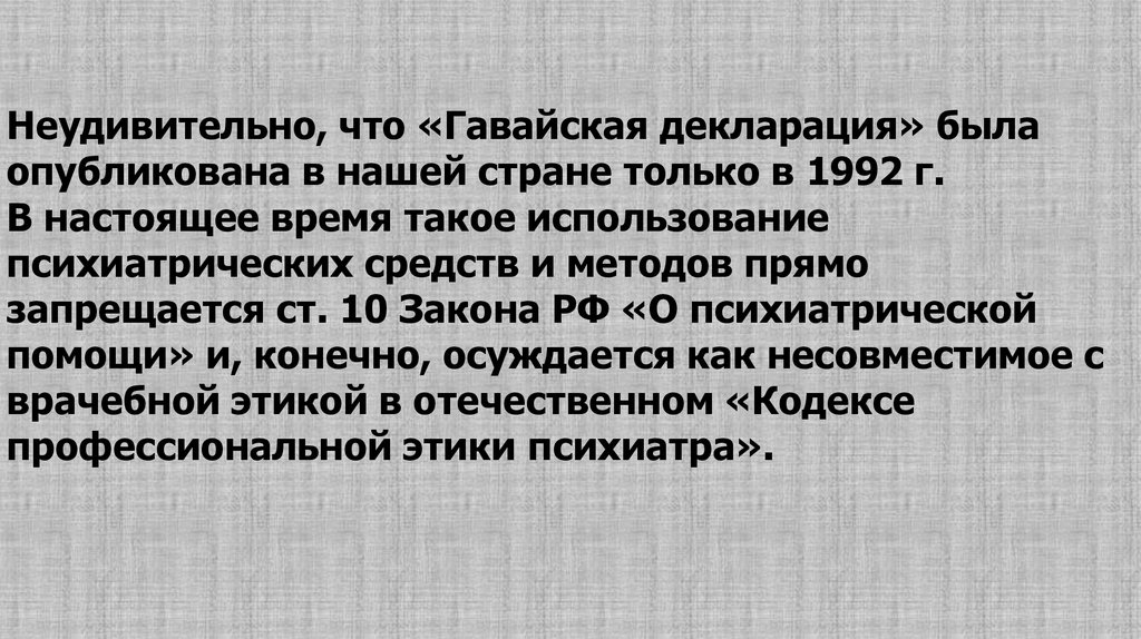 Неудивительно, что «Гавайская декларация» былаопубликована в нашей стране только в 1992 г.