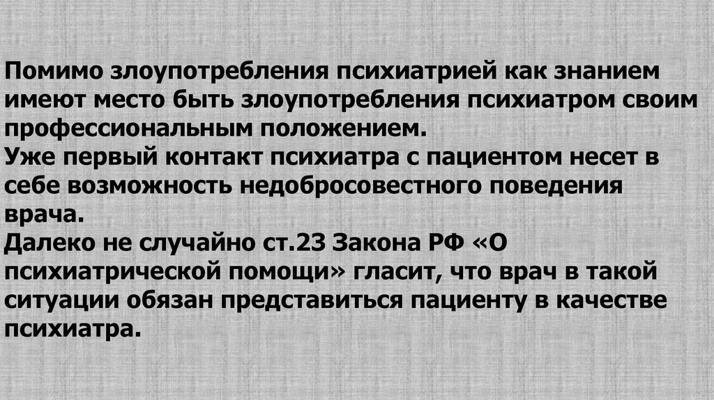 Помимо злоупотребления психиатрией как знаниемимеют место быть злоупотребления психиатром своим
