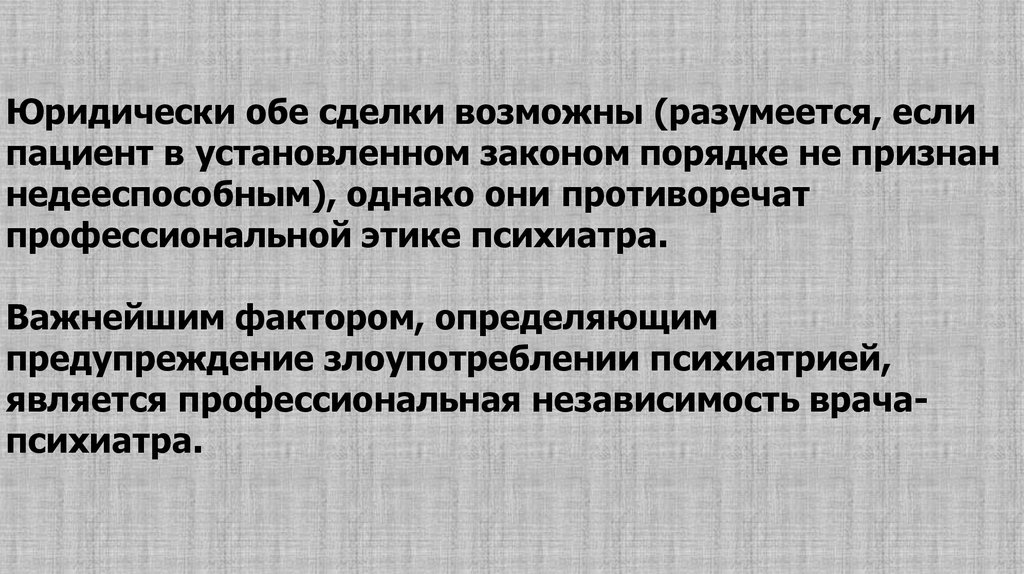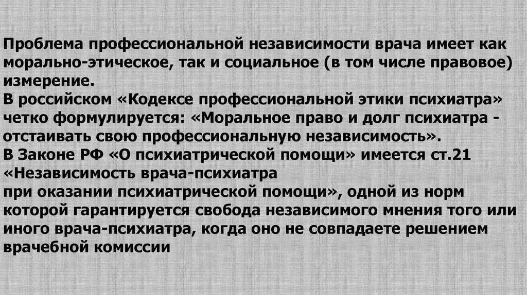 является профессиональная независимость врачапсихиатра.
