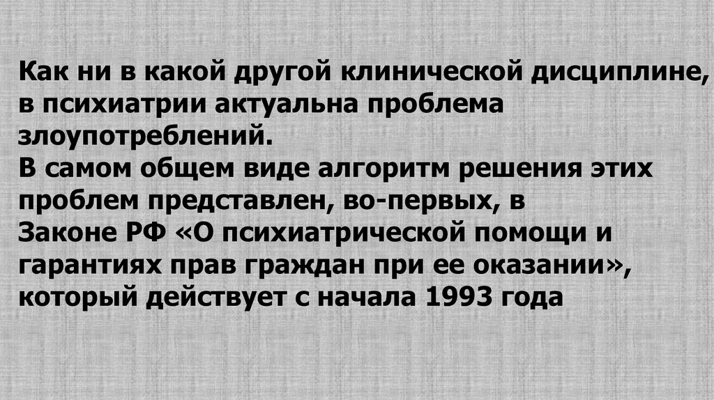Как ни в какой другой клинической дисциплине,в психиатрии актуальна проблема