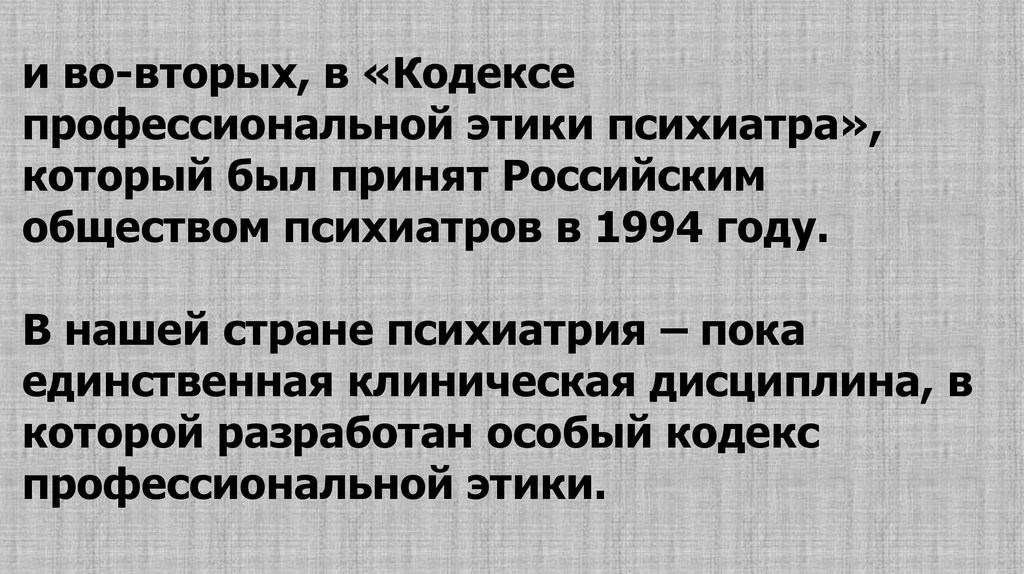 и во-вторых, в «Кодексепрофессиональной этики психиатра»,