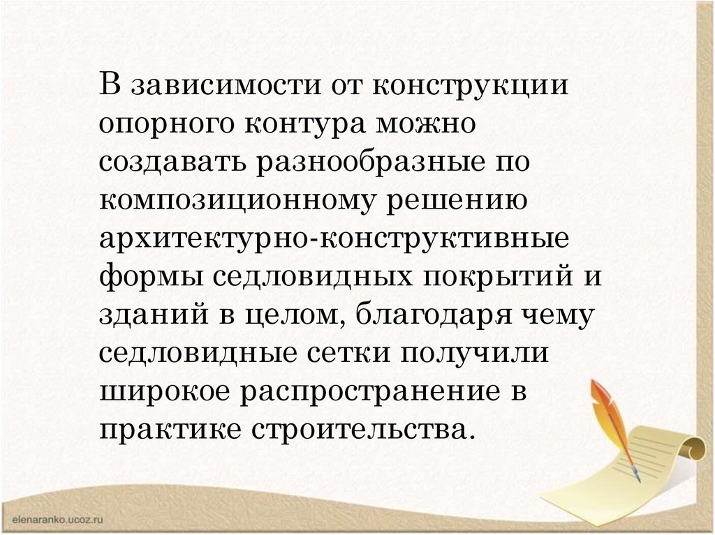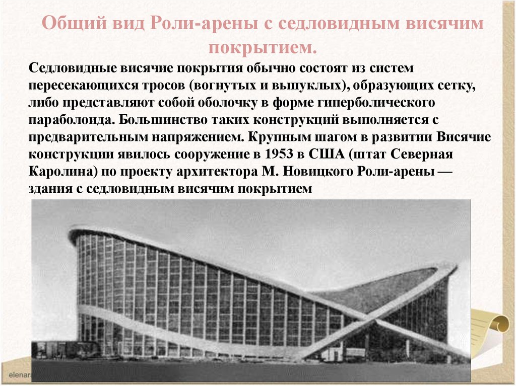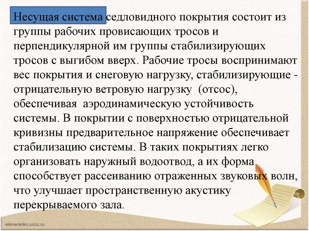 12. Достоинства седловидных висячих конструкций