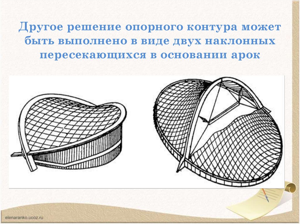 параболических наклонных арок и эллиптического или круглого