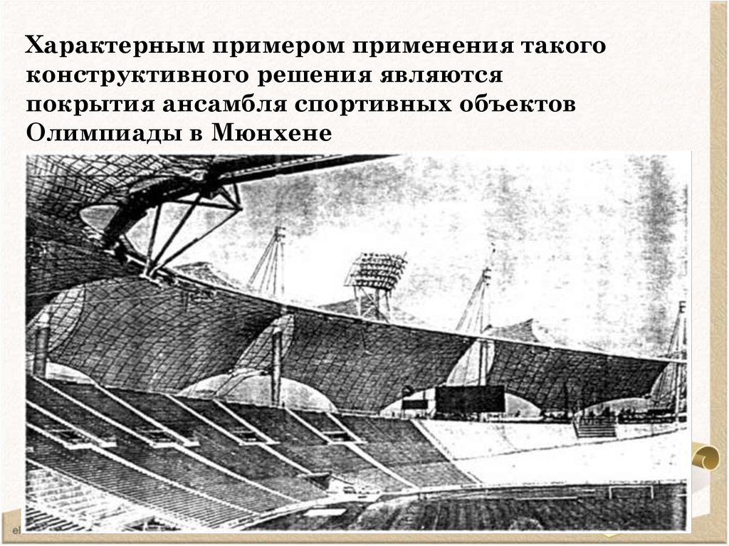 • Покрытия с передачей распоров от несущихи напрягающих нитей на наклонные или