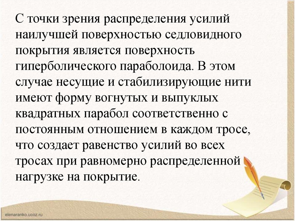 Седловидное покрытие представляетсобой систему, состоящую из