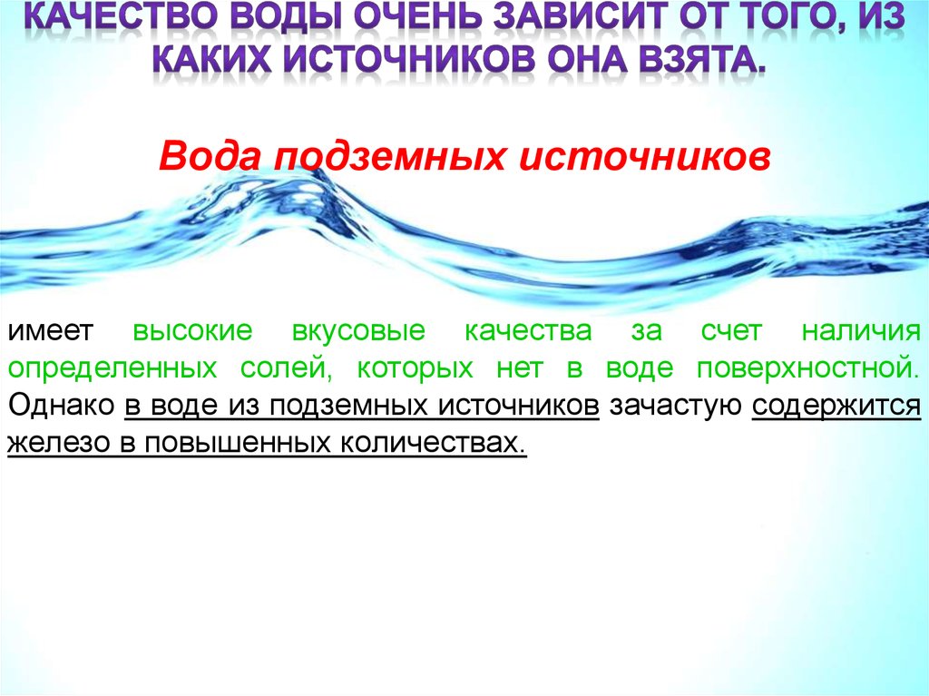 Однако в воде из подземных источников зачастую содержится