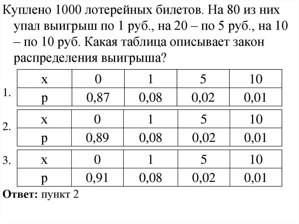 дежурство; количество выигрышных билетов из 3-х