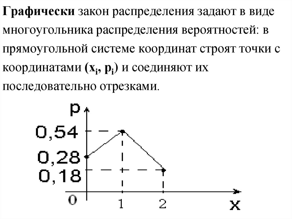 Графически закон распределения задают в видемногоугольника распределения вероятностей: в