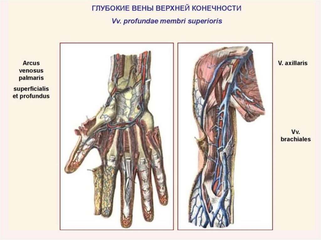 Глубокие вены следуют параллельно с артериями и нервом в общем сосудистонервном пучке.