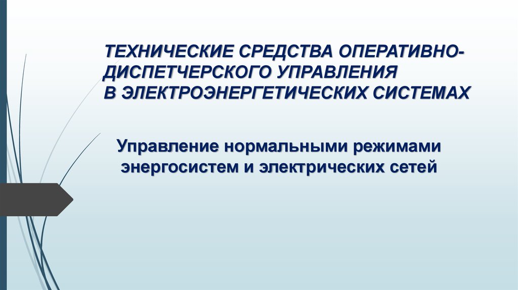 ТЕХНИЧЕСКИЕ СРЕДСТВА ОПЕРАТИВНОДИСПЕТЧЕРСКОГО УПРАВЛЕНИЯВ ЭЛЕКТРОЭНЕРГЕТИЧЕСКИХ СИСТЕМАХ