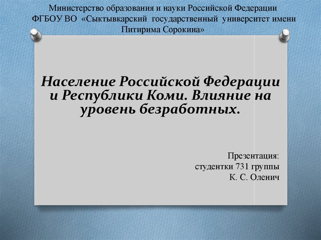Министерство образования и науки Российской ФедерацииФГБОУ ВО «Сыктывкарский государственный университет имени