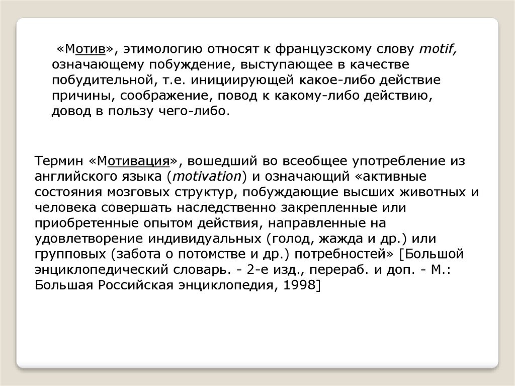 Термин «Мотивация», вошедший во всеобщее употребление из
