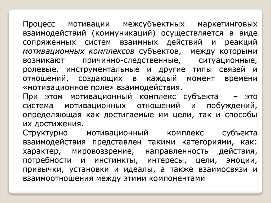 В процессе взаимодействия субъектных мотивационныхкомплексов