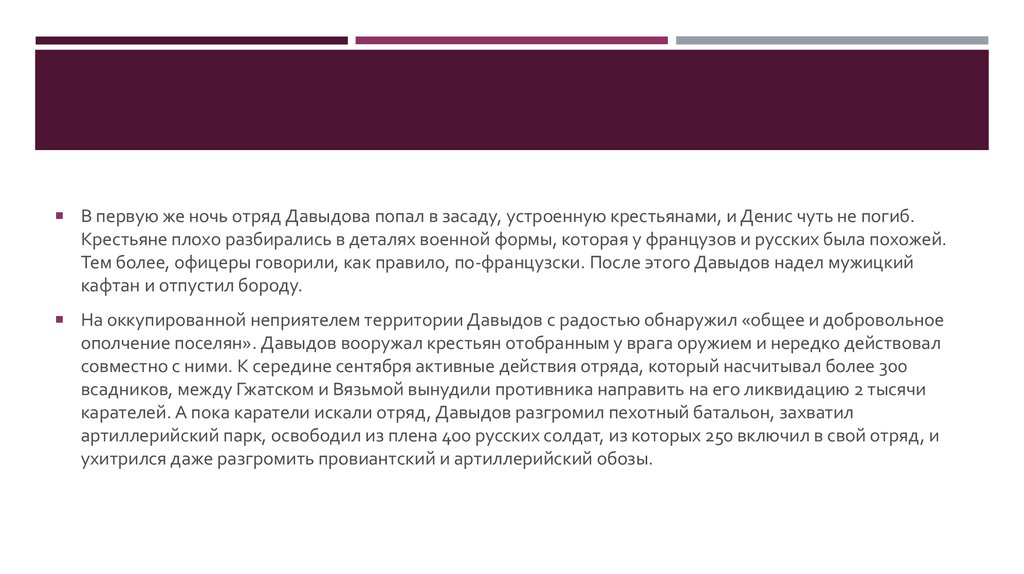 Тем более, офицеры говорили, как правило, по-французски. После этого Давыдов надел мужицкий