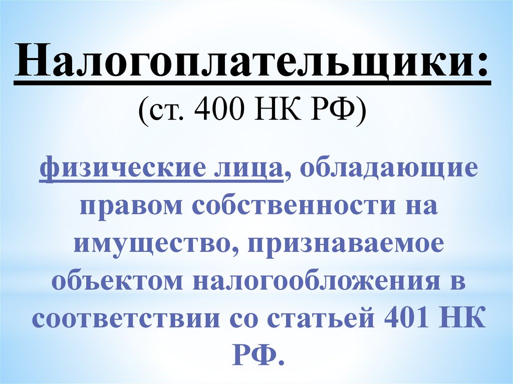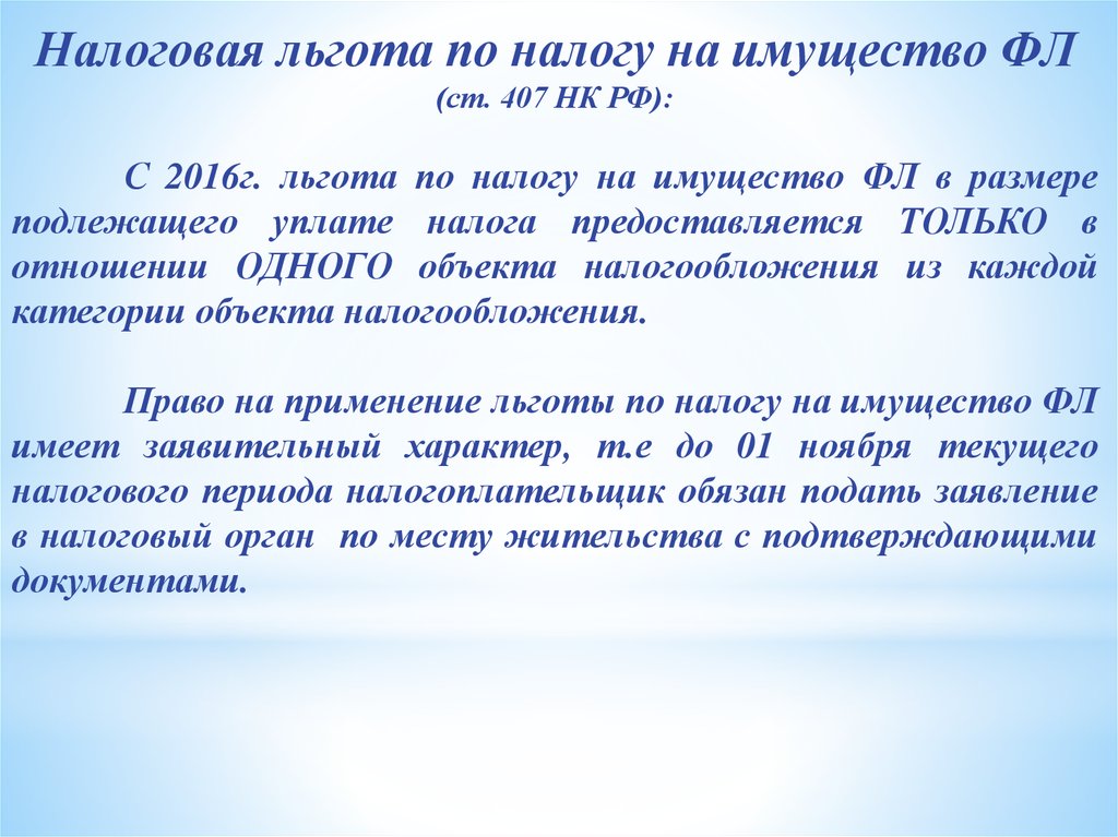 Налоговая льгота по налогу на имущество ФЛ(ст. 407 НК РФ):