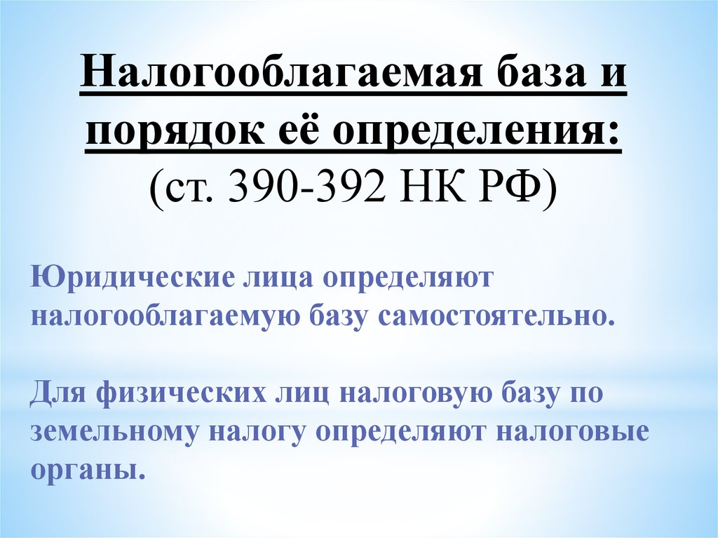 Налоговая база по земельному налогу