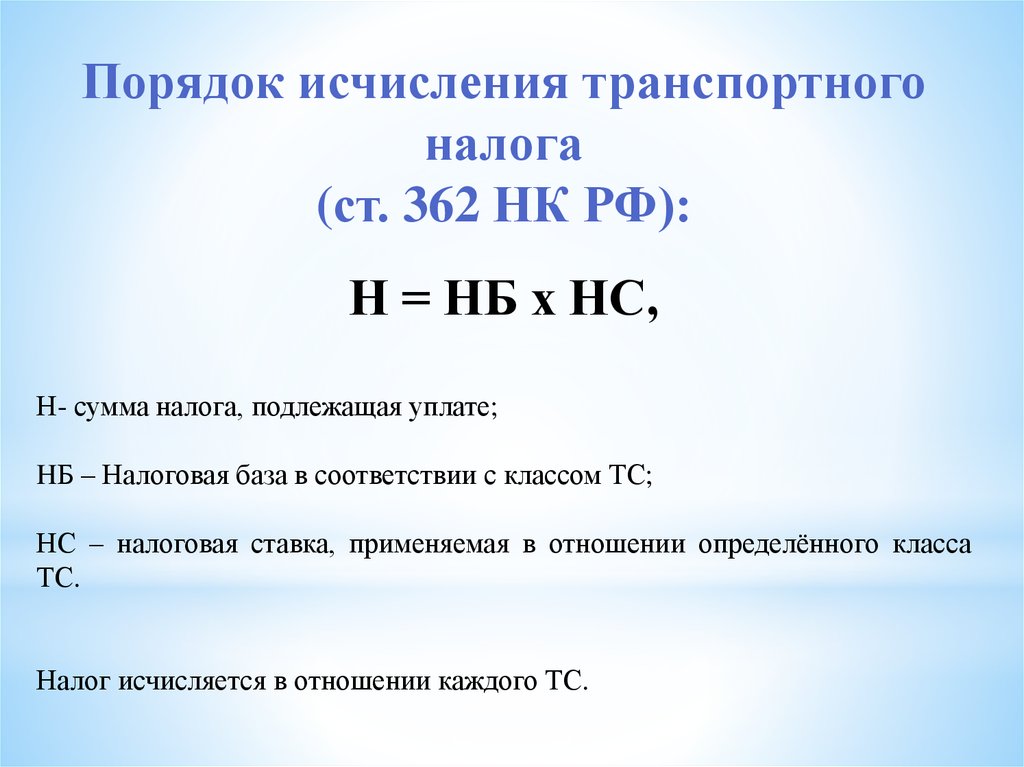 НС – налоговая ставка, применяемая в отношении определённого класса