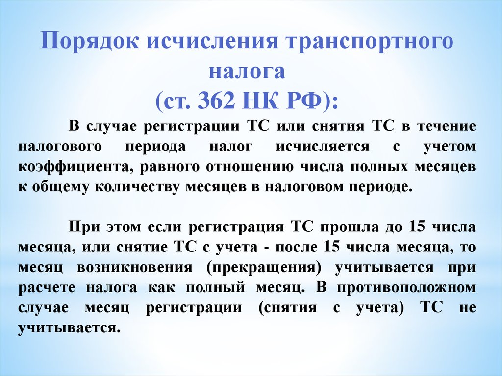 месяца, или снятие ТС с учета - после 15 числа месяца, то