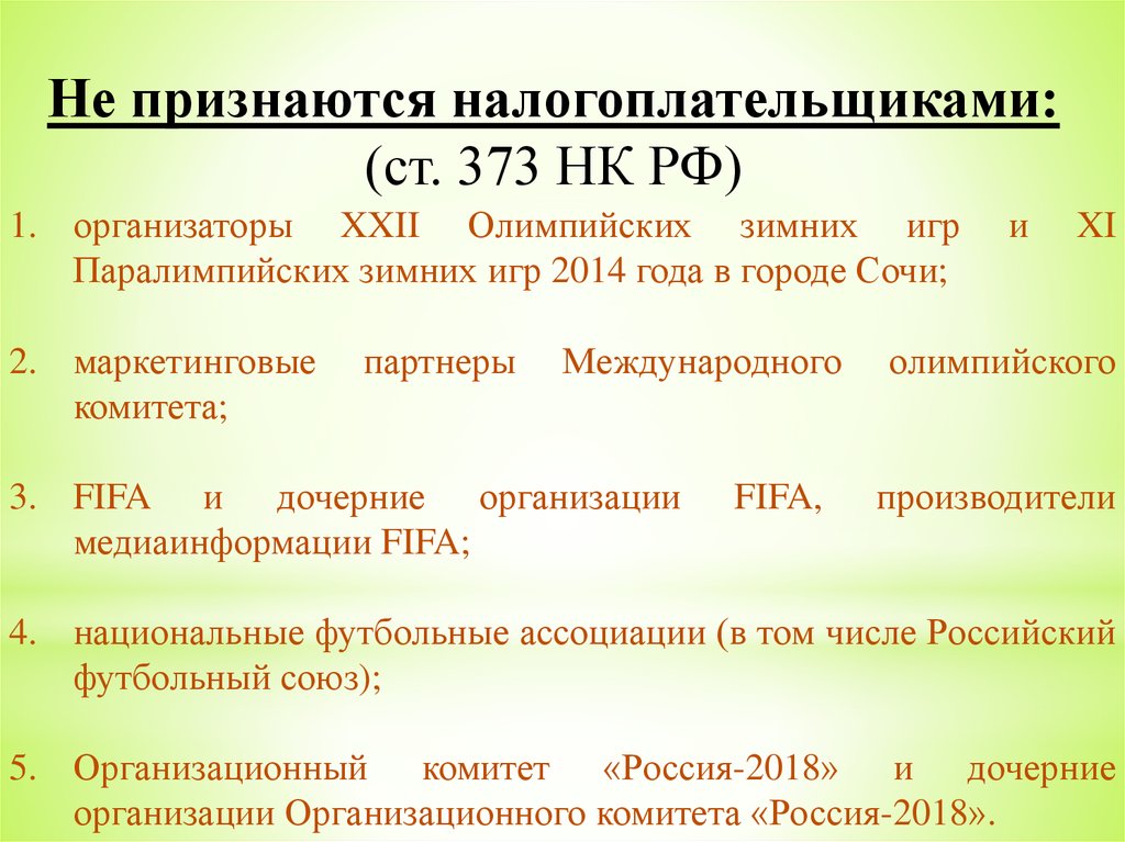 Не признаются налогоплательщиками:(ст. 373 НК РФ)