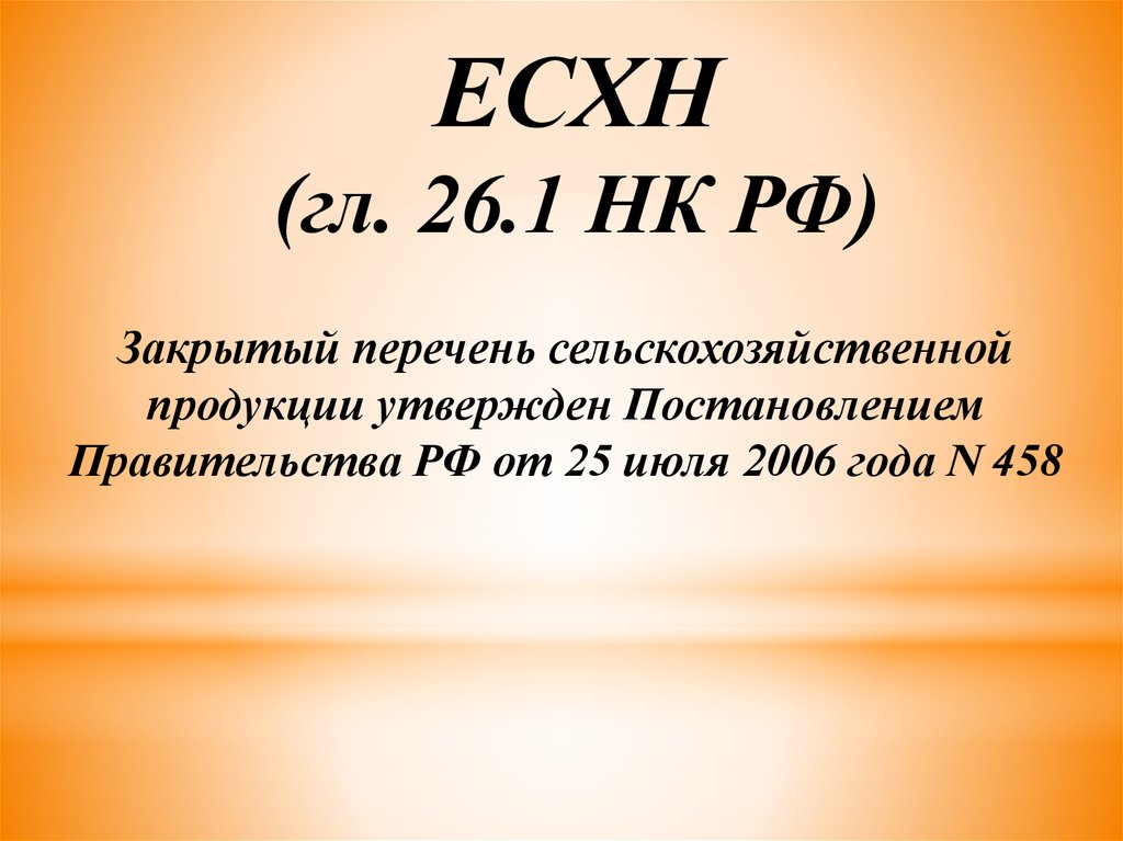ЕСХН(гл. 26.1 НК РФ)