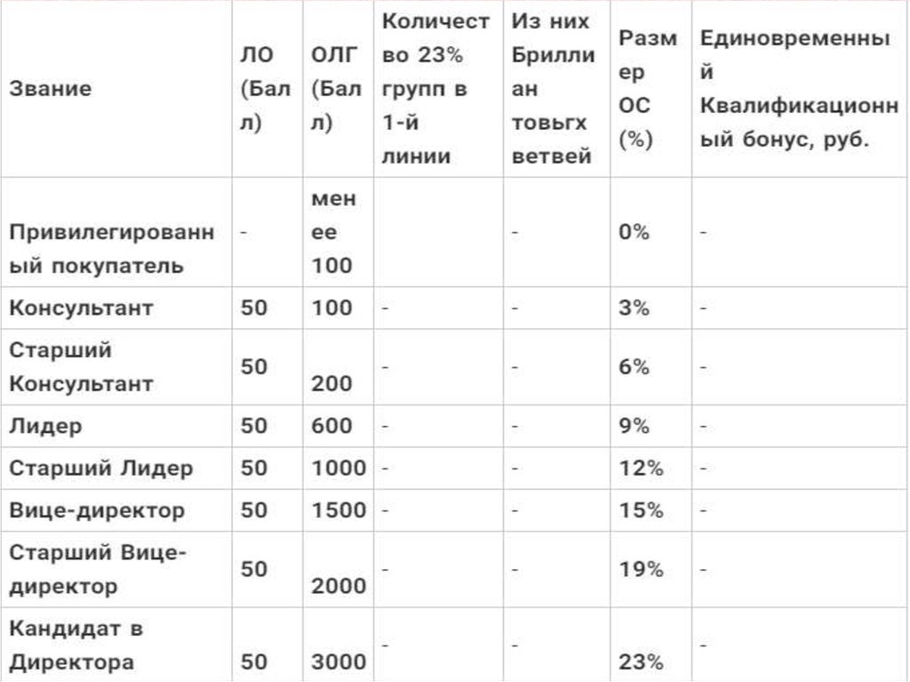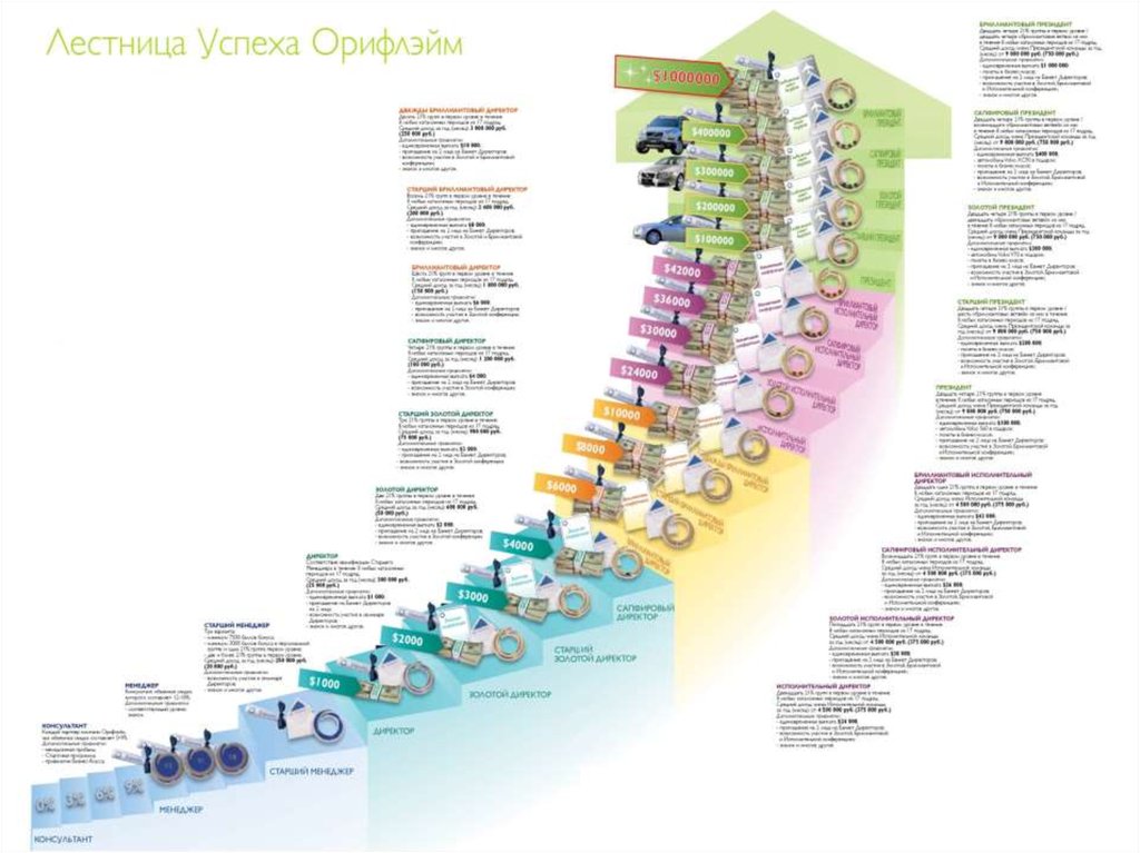 Эта компания на рынке более 20 лет. Это Российская компания, чем оченьгордятся консультанты. Маркетинг план и картинка карьерной лестницы до