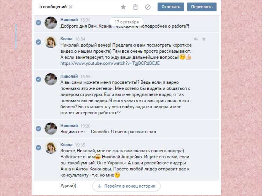вашего собеседника стороны для дальнейших действий!