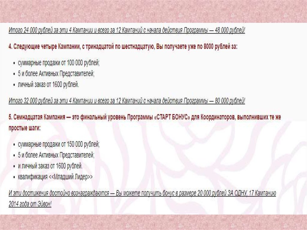 товарооборотом 1000 баллов (80 000р). На любом уровне предусмотрен