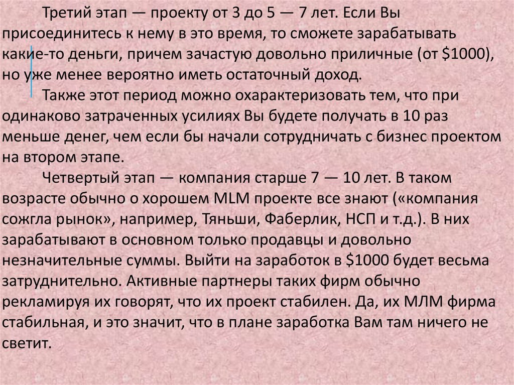 Третий этап — проекту от 3 до 5 — 7 лет. Если Выприсоединитесь к нему в это время, то сможете зарабатывать