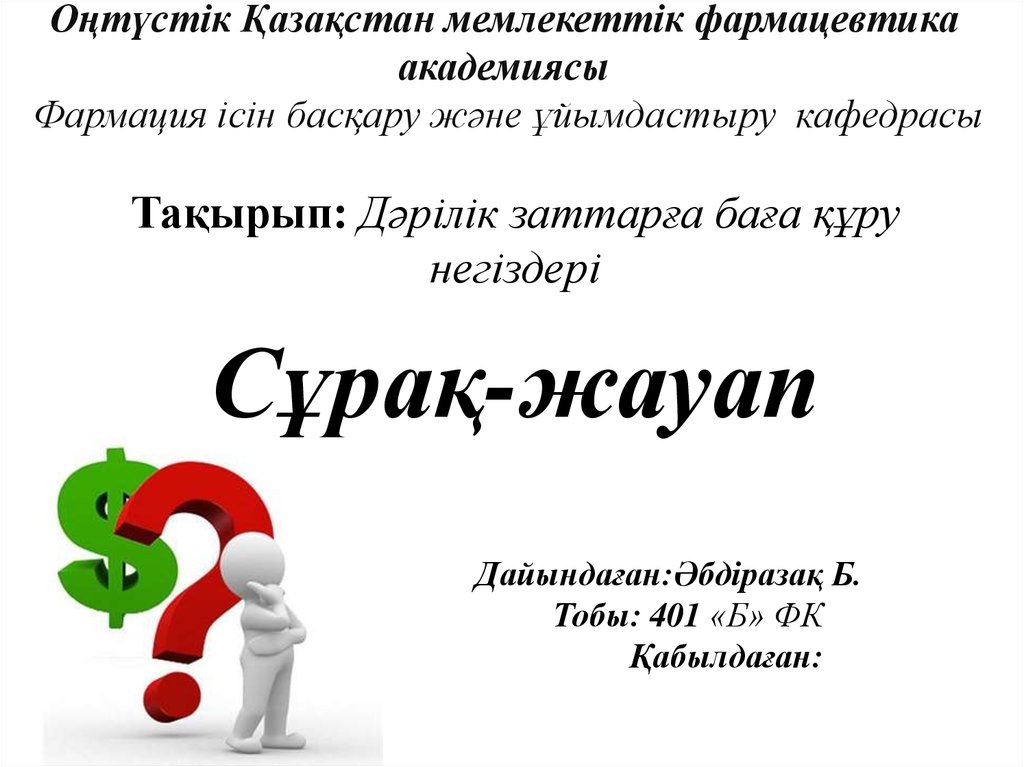Тақырып: Дәрілік заттарға баға құрунегіздері