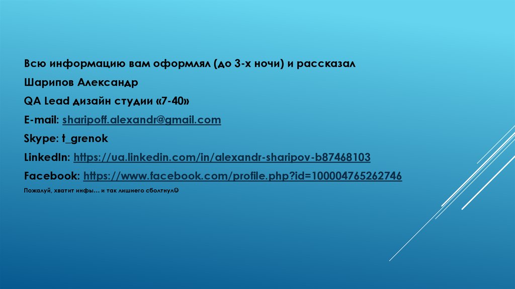 Пожалуй, хватит инфы… и так лишнего сболтнул