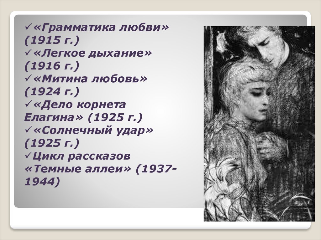 26. Источники И.Бунин «Темные аллеи», «Солнечный удар» и др. рассказы Иллюстрации и фотографии