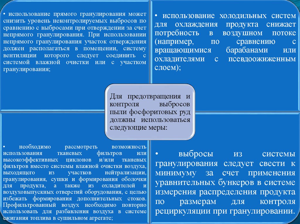 • использование прямого гранулирования можетснизить уровень неконтролируемых выбросов по