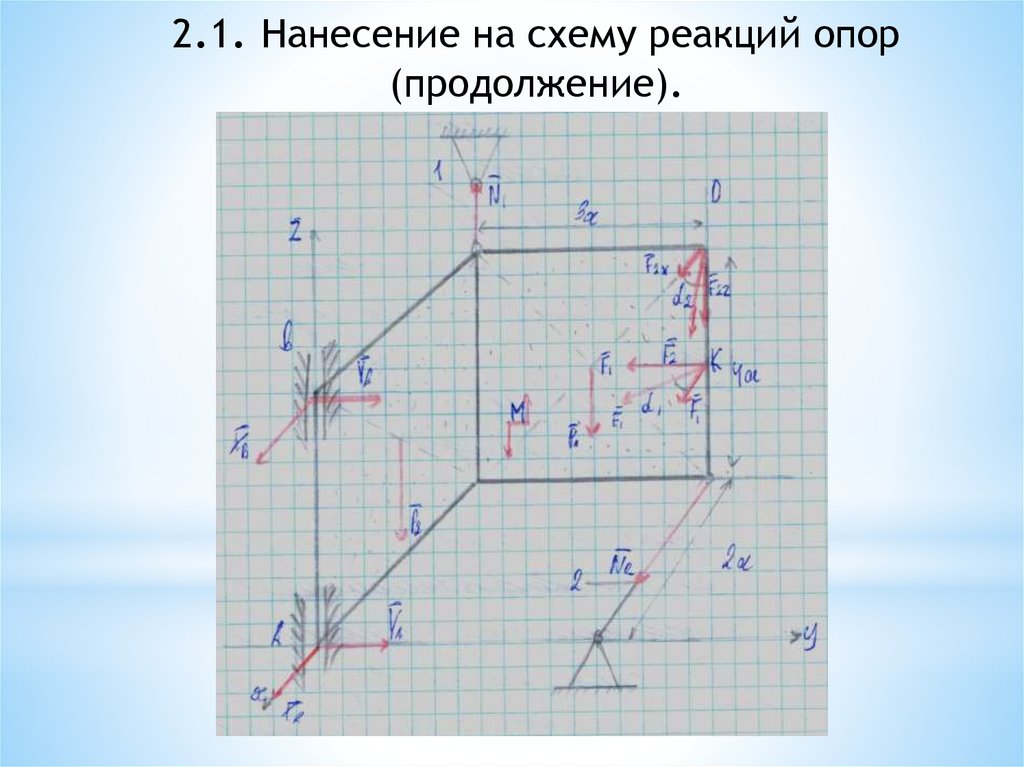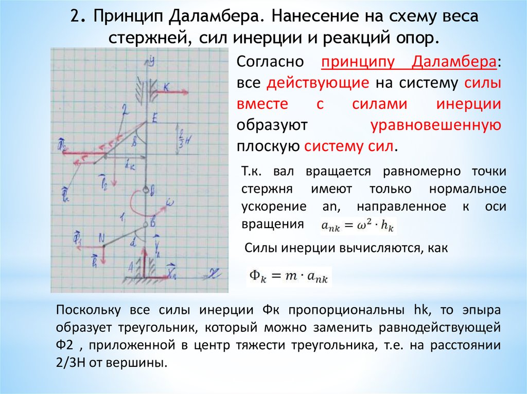 2. Принцип Даламбера. Нанесение на схему весастержней, сил инерции и реакций опор.
