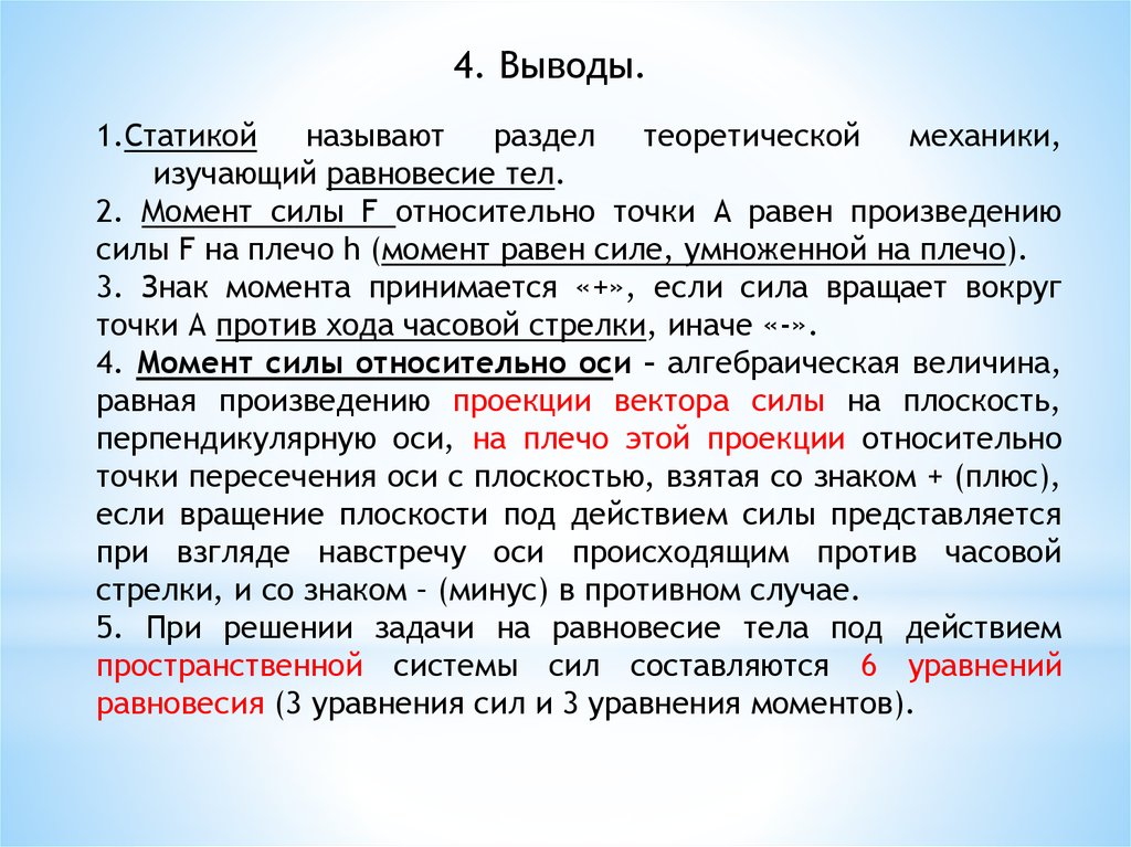 4. Выводы.1.Динамикой называют раздел теоретической механики,