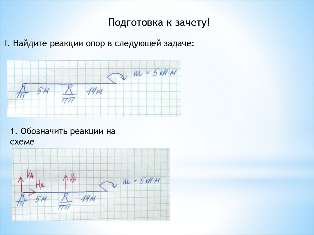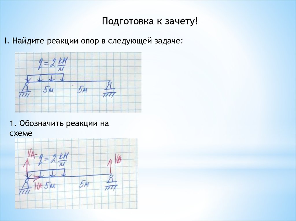 Подготовка к зачету!I. Найдите реакции опор в следующих задачах самостоятельно: