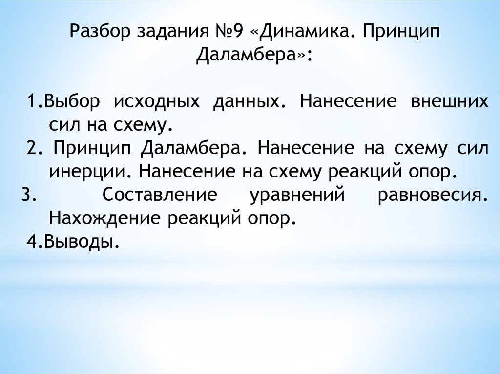 Разбор задания №9 «Динамика. ПринципДаламбера»: