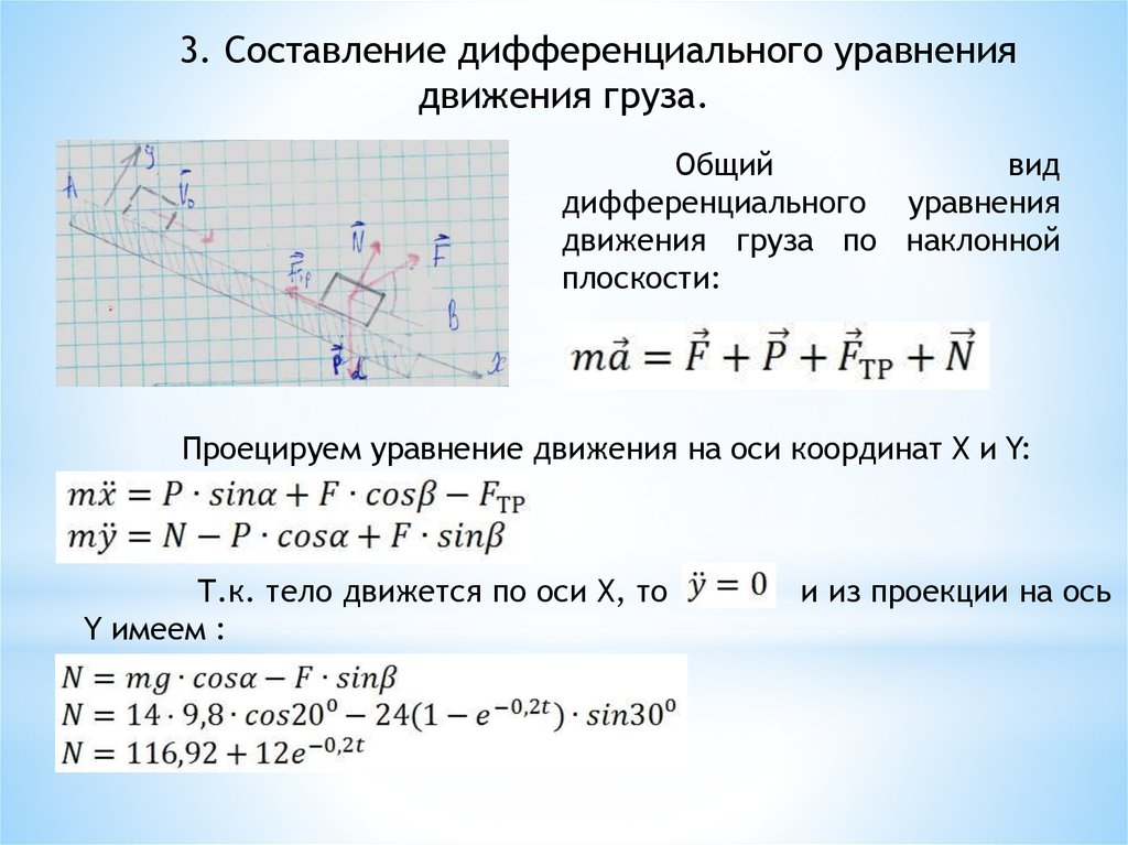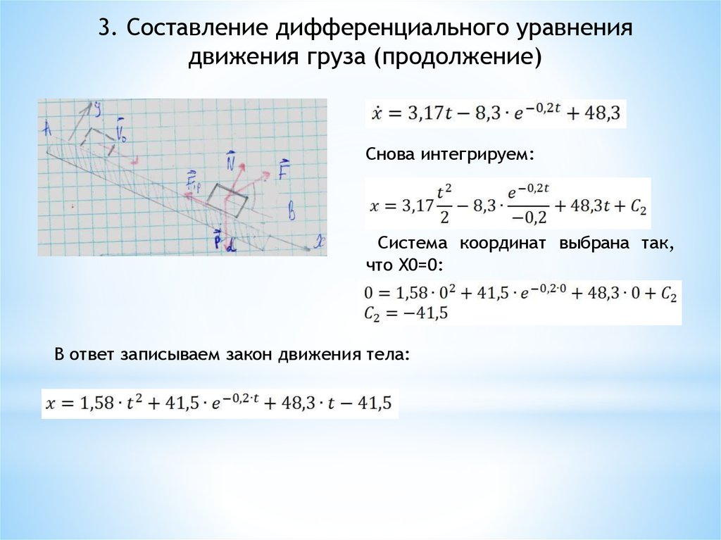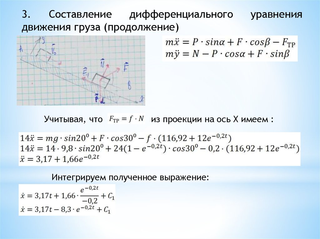 3. Составление дифференциального уравнениядвижения груза (продолжение)