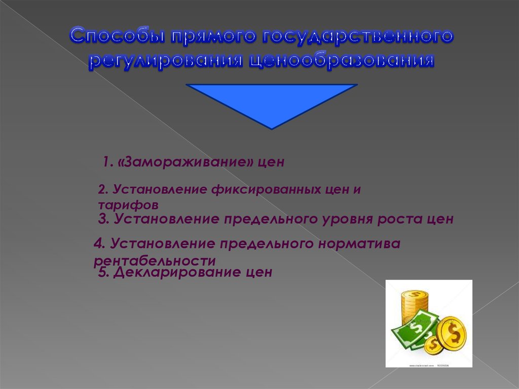 9. 5.Государственное регулирование ценообразования представляет собой воздействие на процессы установления и применения цен со