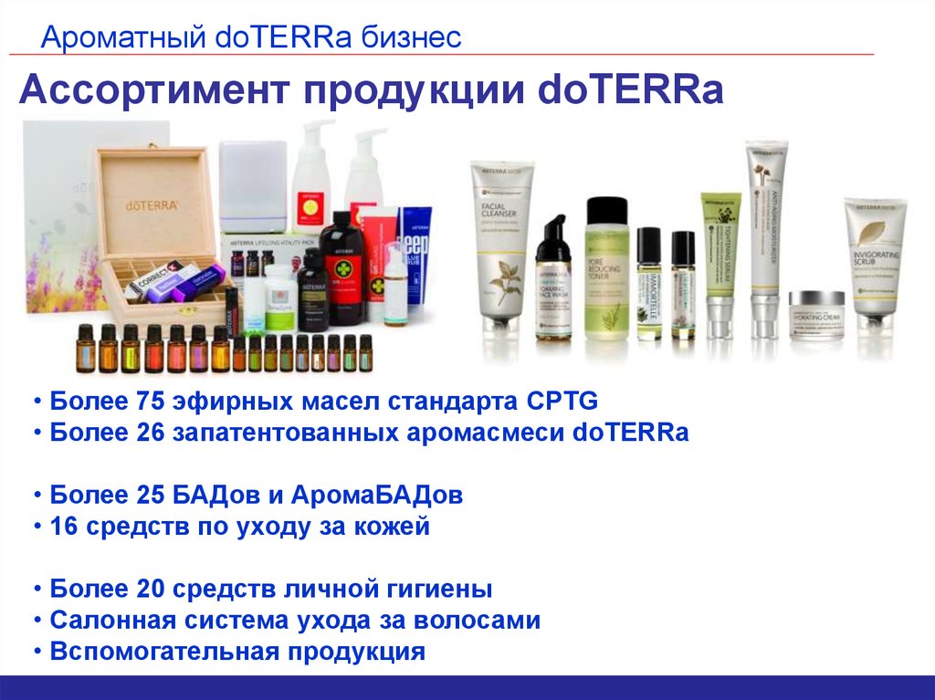Ароматный doTERRa бизнесАссортимент продукции doTERRa