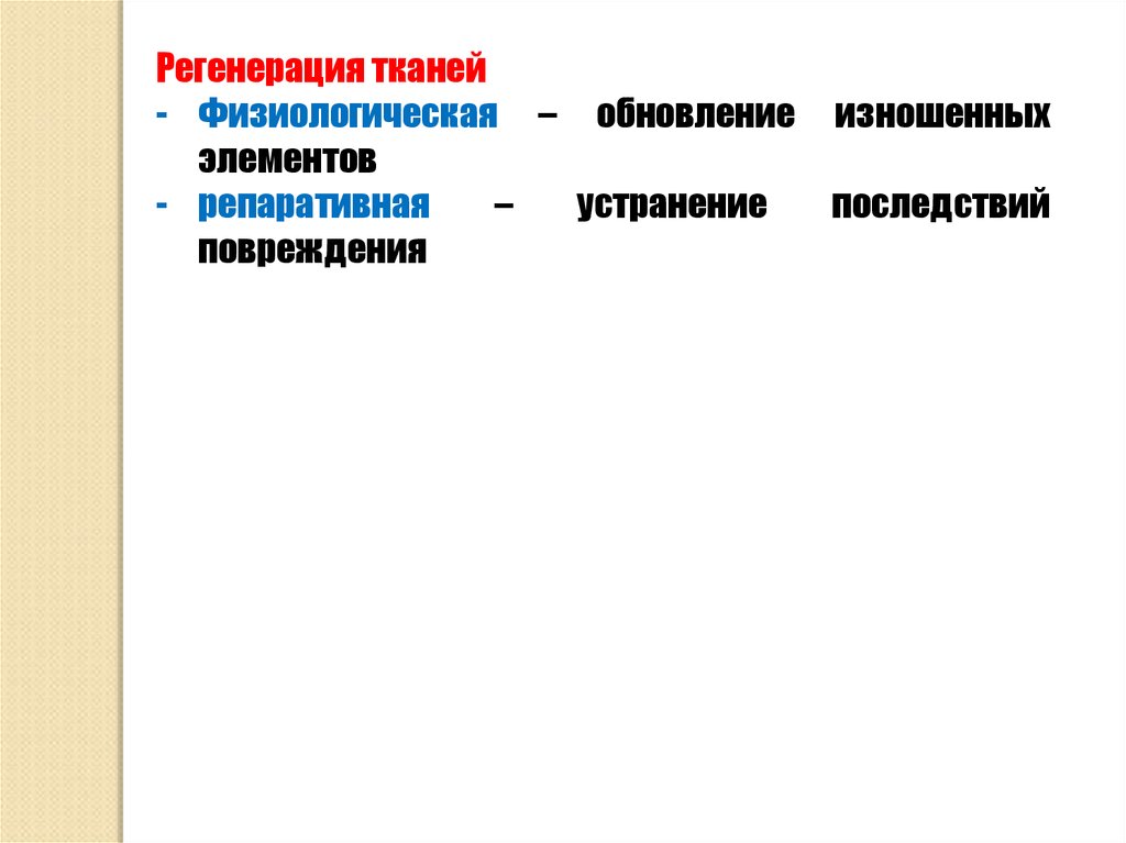 Регенерация тканей- Физиологическая – обновление изношенных