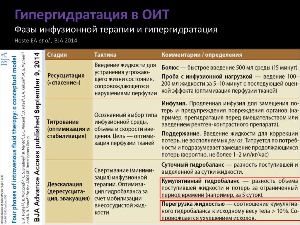 Гипергидратация в ОИТФазы инфузионной терапии и гипергидратация