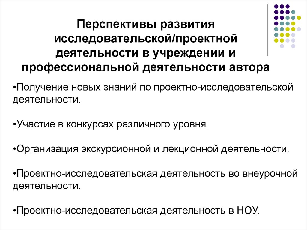 Перспективы развитияисследовательской/проектной