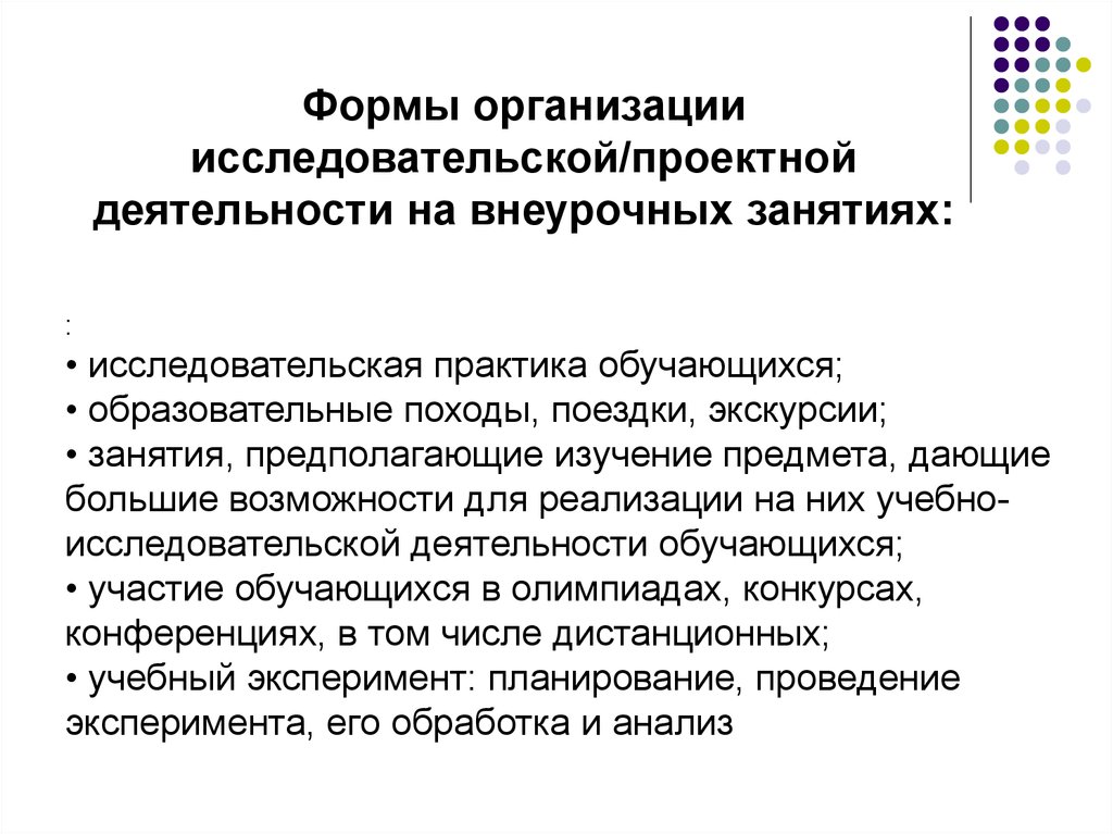 Формы организацииисследовательской/проектной