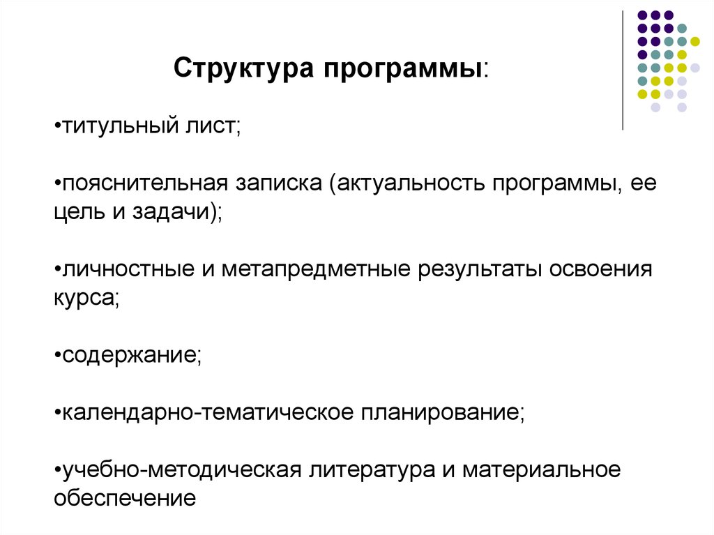 Структура программы:•титульный лист;