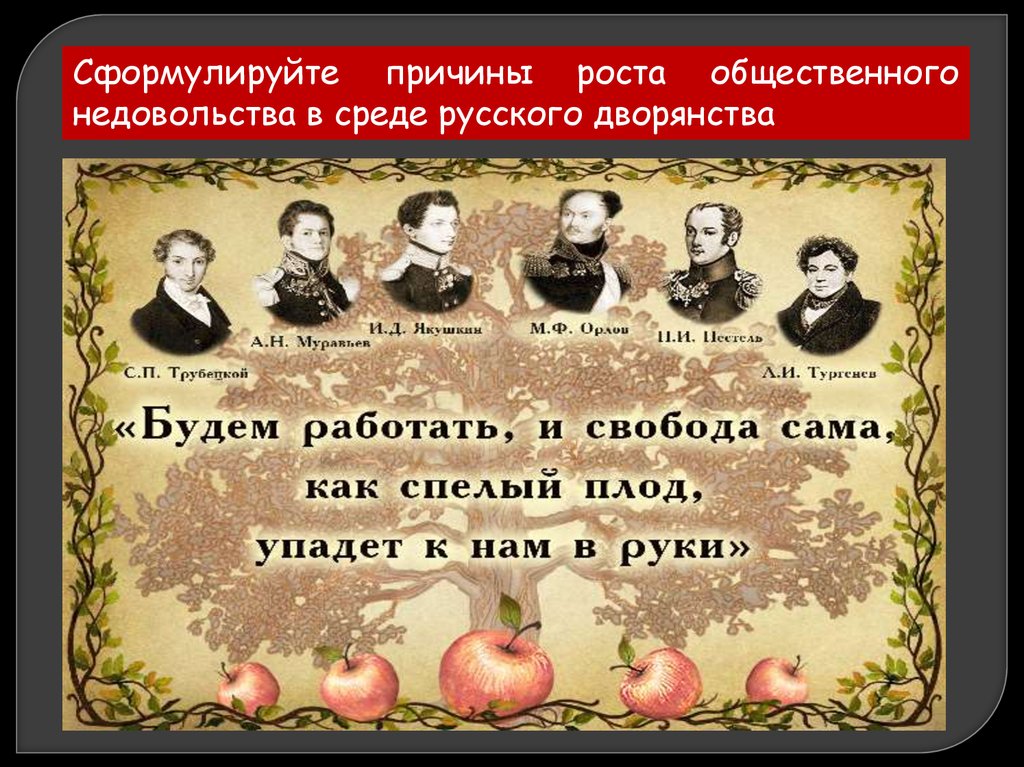 Сформулируйте причины роста общественногонедовольства в среде русского дворянства