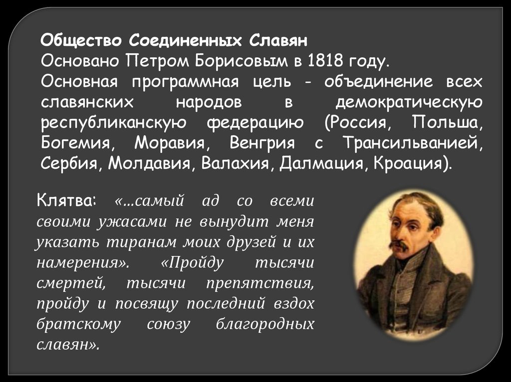Общество Соединенных СлавянОсновано Петром Борисовым в 1818 году.