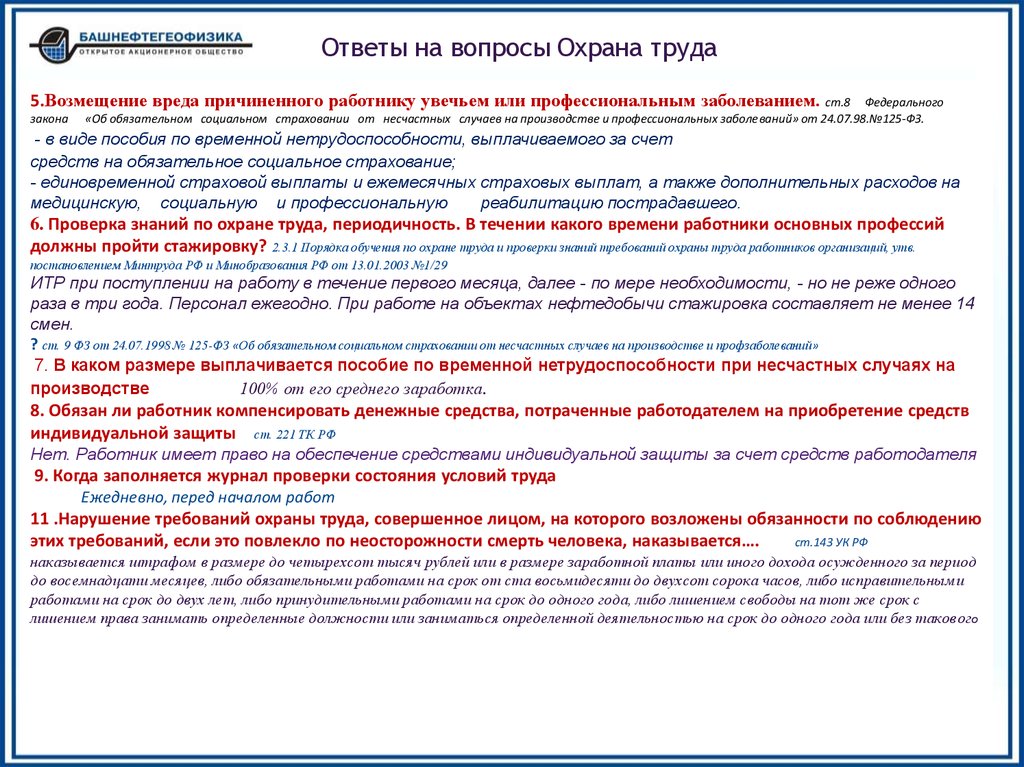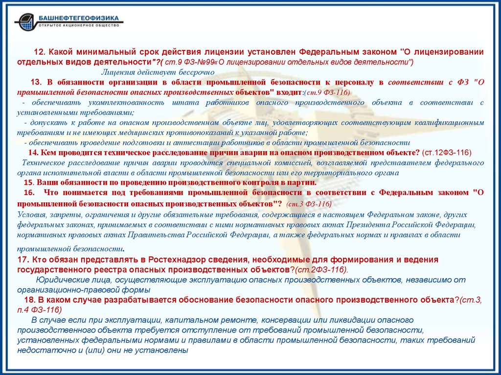 13. В обязанности организации в области промышленной безопасности к персоналу в соответствии с ФЗ