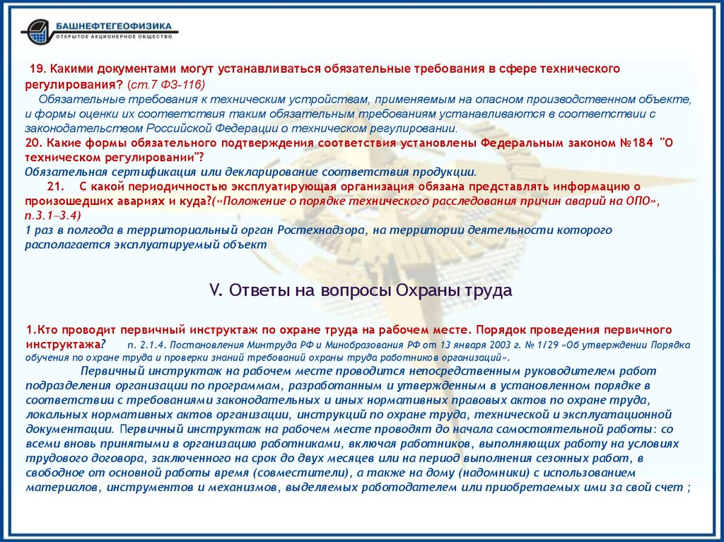 промышленной безопасности и охраны труда, «Технической инструкции