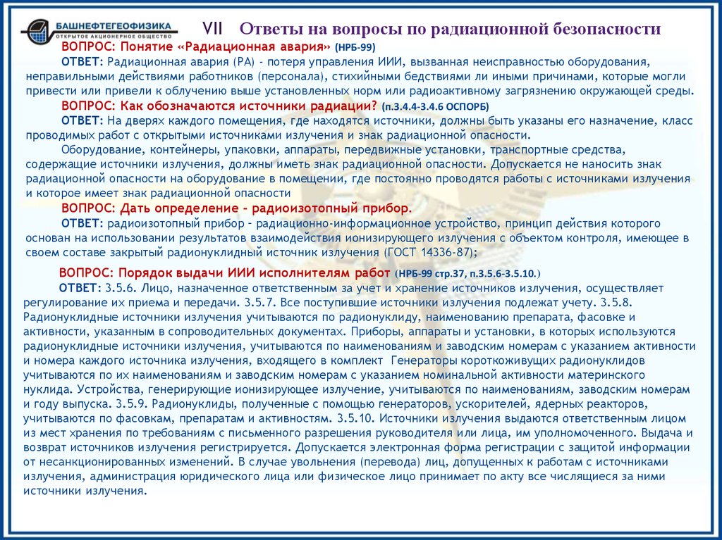 VII Ответы на вопросы по радиационной безопасностиВОПРОС: Дайте определение Закрытым радионуклидным источником