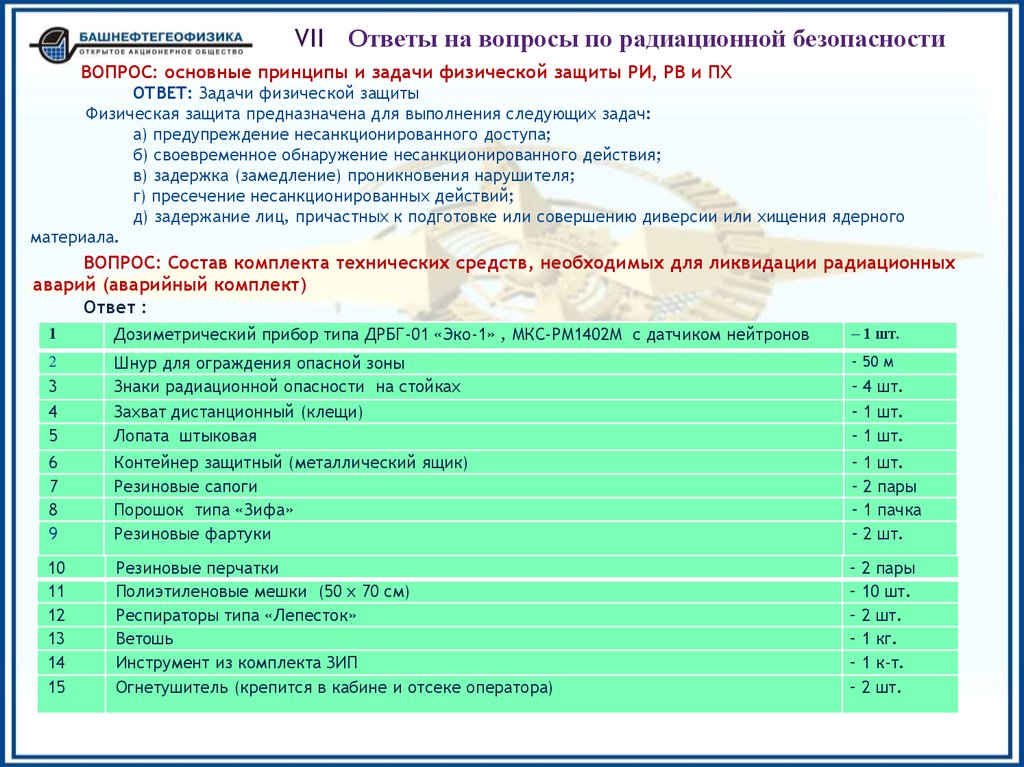 предупреждению и ликвидации радиационных аварий (нарушений) в ОАО «Башнефтегеофизика» при эксплуатации